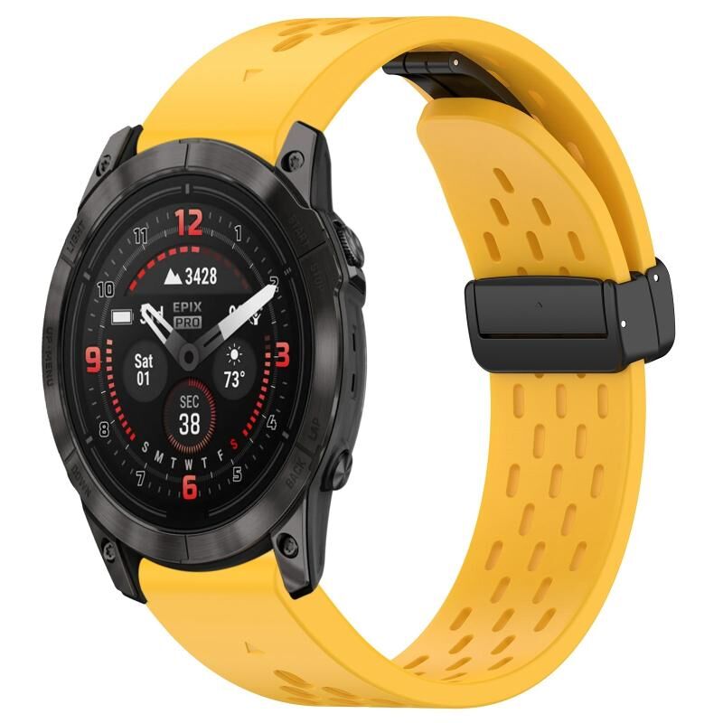 Για Garmin Epix Pro 51mm οπές μαγνητική πτυσσόμενη πόρπη σιλικόνης ρολόι μπάντα ρολογιού (κίτρινο)