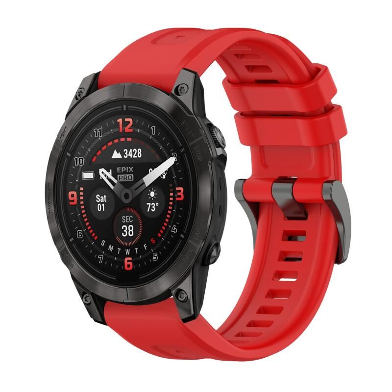 Για το Garmin Epix Pro 51 χιλιοστά καθαρό χρώμα χάλυβα πόρπη 26 χιλιοστά σιλικόνης ρολόι μπάντα (κόκκινο)
