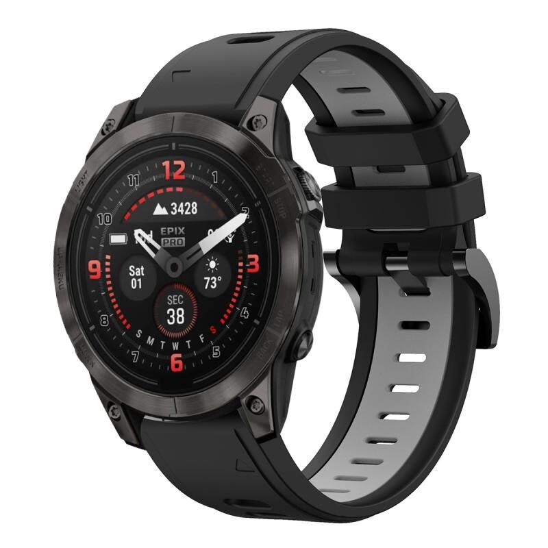 Για το Garmin Epix Pro 51mm Αθλητισμός Δύο χρώματα 26mm σιλικόνης ρολόι μπάντα (μαύρο + γκρι)