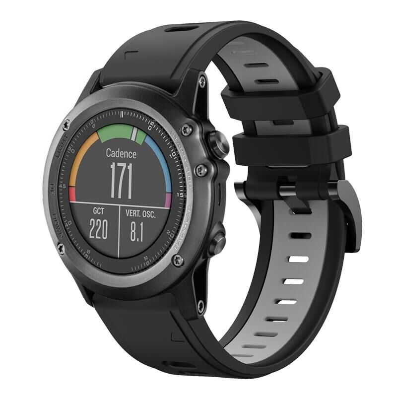 Για το Garmin Fenix 3 26 χιλιοστά δύο χρωμάτων Αθλητικό λουράκι σιλικόνης (μαύρο + γκρι)