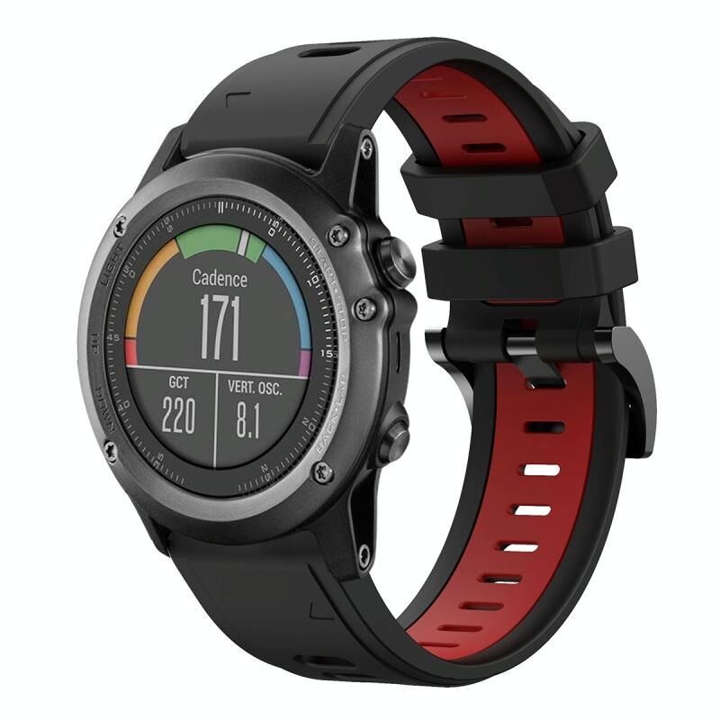 Για το Garmin Fenix 3 26 χιλιοστά δύο χρωμάτων Αθλητικό λουράκι σιλικόνης (μαύρο + κόκκινο)