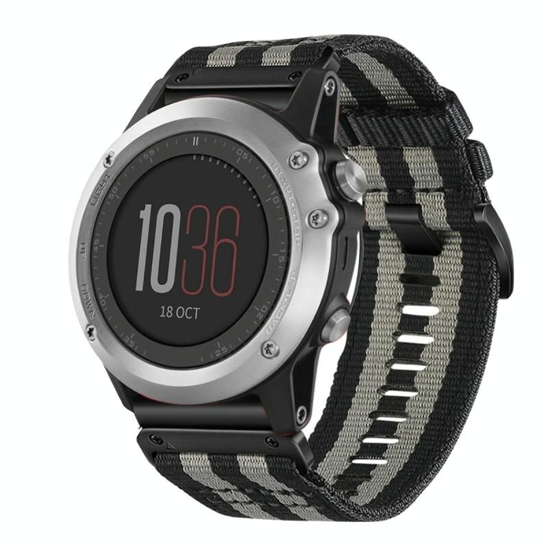 Για Garmin Fenix 3 / Fenix 3 HR Nylon Canvas Quick Release 26mm Watch Band (μαύρο γκρι)