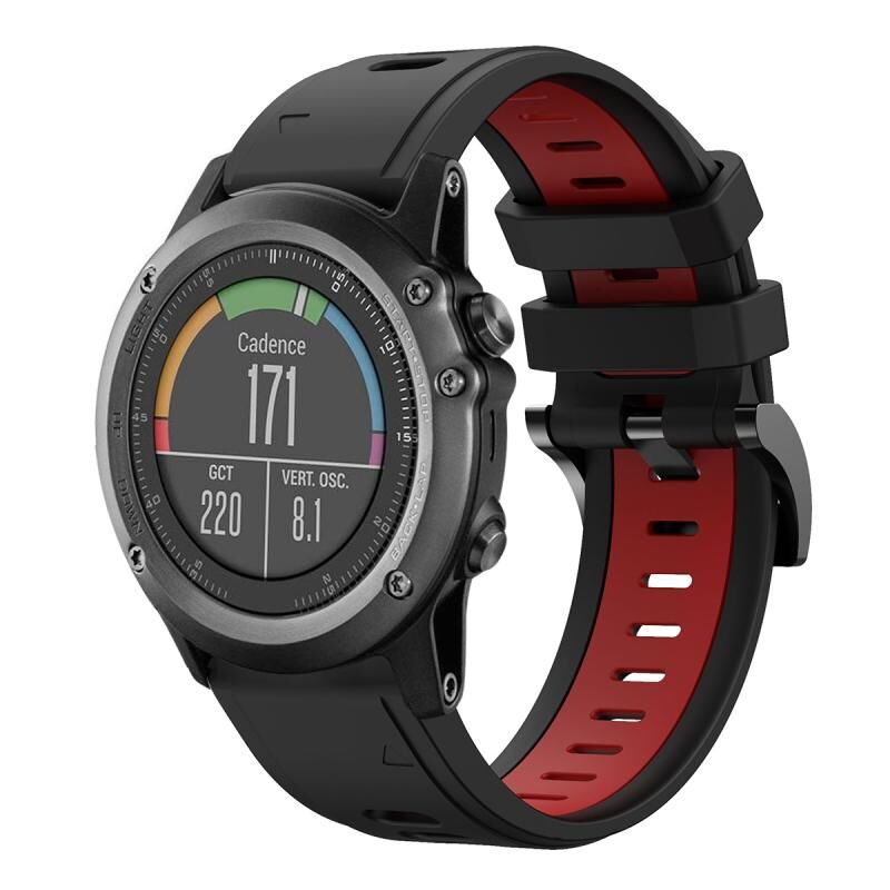 Για το Garmin Fenix 3 HR 26 χιλιοστά δύο χρωμάτων Αθλητικό λουράκι σιλικόνης (μαύρο + κόκκινο)