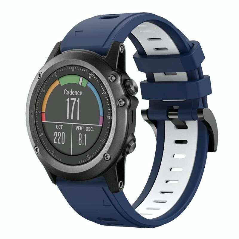 Για το Garmin Fenix 3 HR 26 χιλιοστά δύο χρωμάτων Αθλητικό λουράκι σιλικόνης (Μπλε μεσάνυχτα + Λευκό)