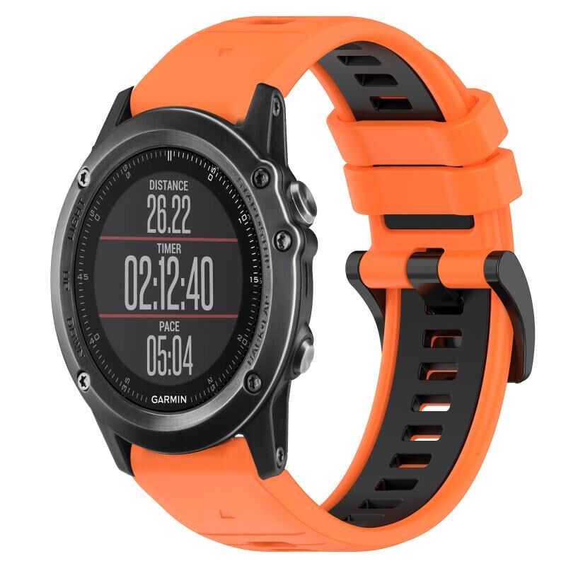 Για Garmin Fenix 3 HR Sports Δίχρωμο 26mm Σιλικόνης Ρολόι Μπρασελέ (Πορτοκαλί+Μαύρο)