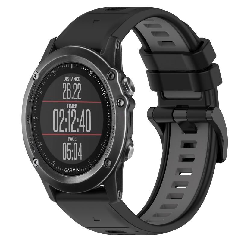 Για Garmin Fenix 3 Sapphire Sports Δίχρωμο 26mm Σιλικόνης Ρολόι Μπρασελέ (Μαύρο+Γκρι)