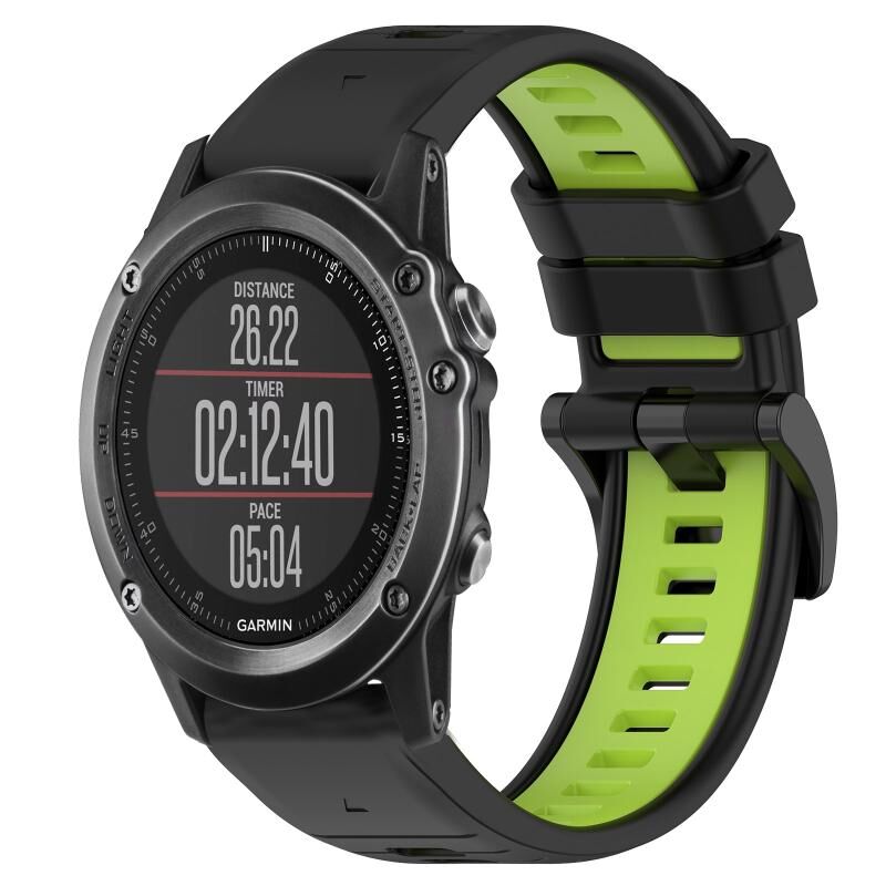 Για Garmin Fenix 3 Αθλητικό Δίχρωμο 26mm λουράκι σιλικόνης (Μαύρο+Λαχανί)