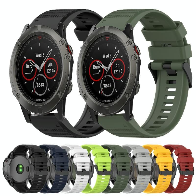 Για Garmin Fenix 5 Plus 22mm Οριζόντια υφή σιλικόνης ρολόι μπάντα ρολογιού με εργαλείο αφαίρεσης (κόκκινο)