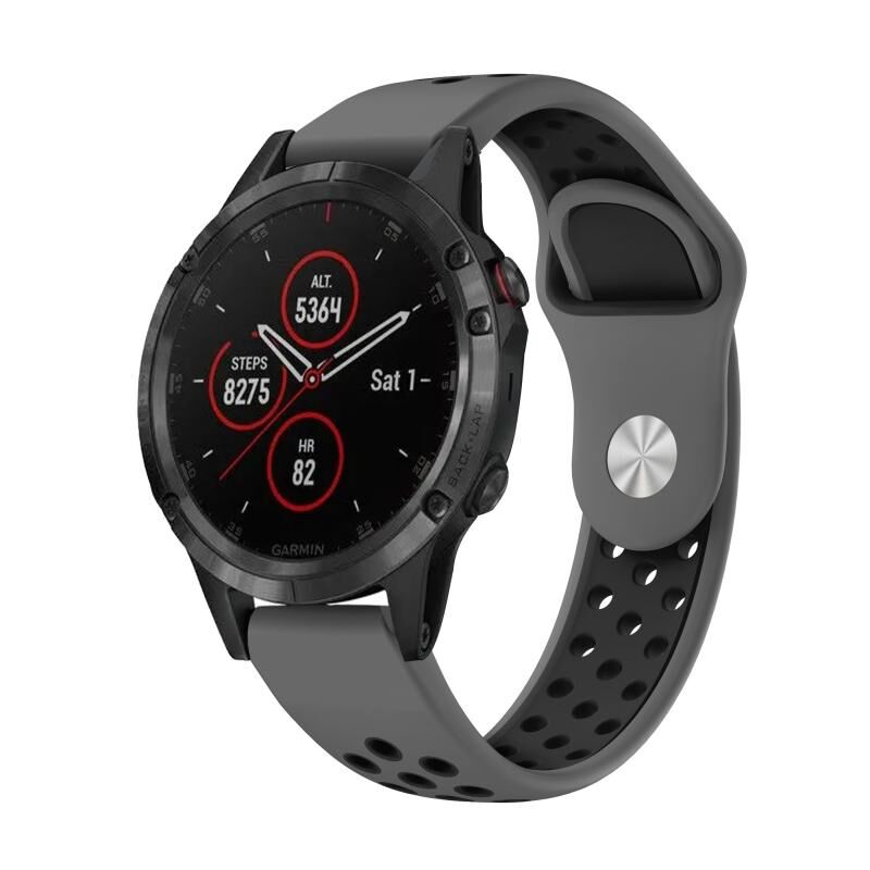 Για το Garmin Fenix 5 Plus 22mm αθλητικό αναπνεύσιμο λουράκι σιλικόνης (γκρι+μαύρο)