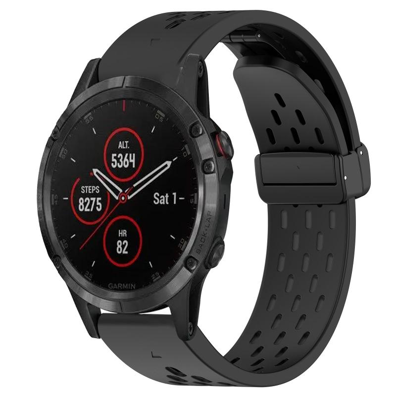 Λουράκι Garmin Fenix 5 Plus 22mm, Σιλικόνης με Αγκράφα Διπλώματος (Μαύρο)