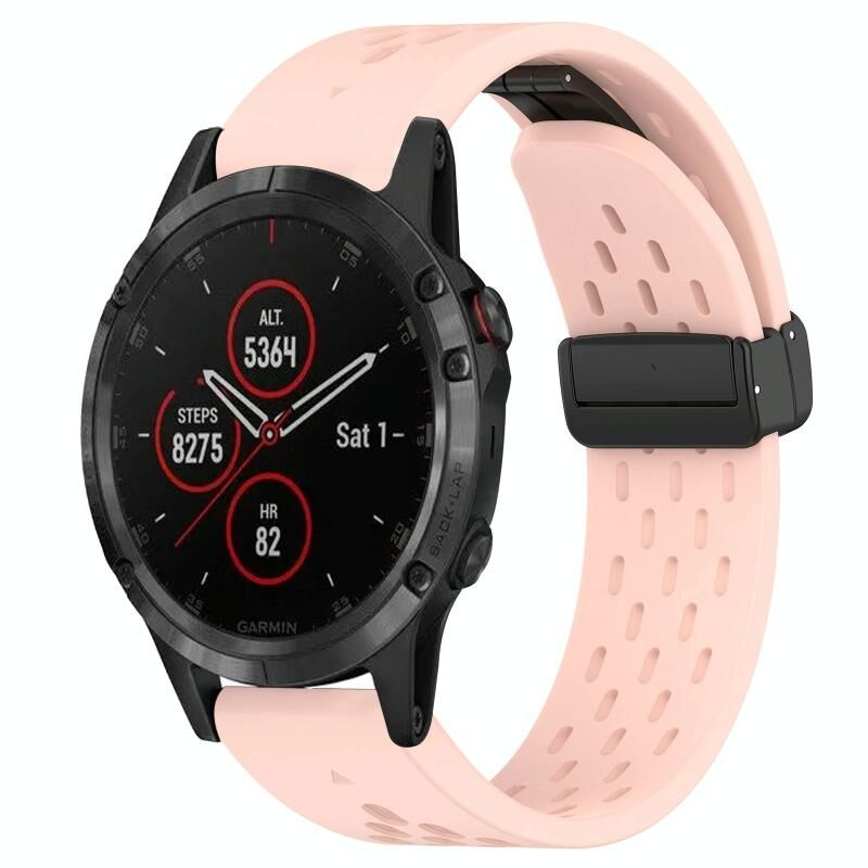 Λουράκι Garmin Fenix 5 Plus 22mm, Σιλικόνης με Αγκράφα Διπλώματος (Ροζ)