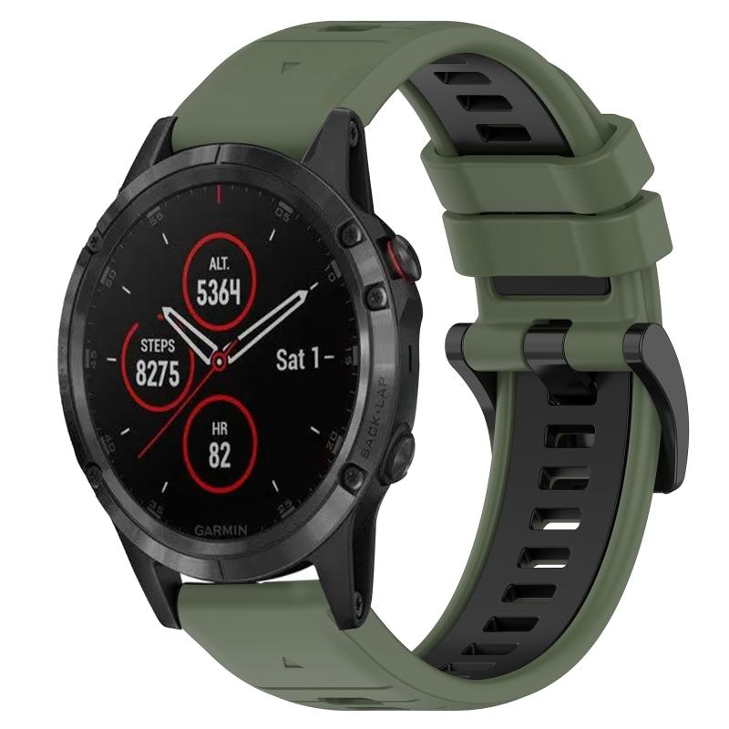 For Garmin Fenix 5 Plus Sports Two-Color 22mm Silicone Watch Band(Olive Green+Black)