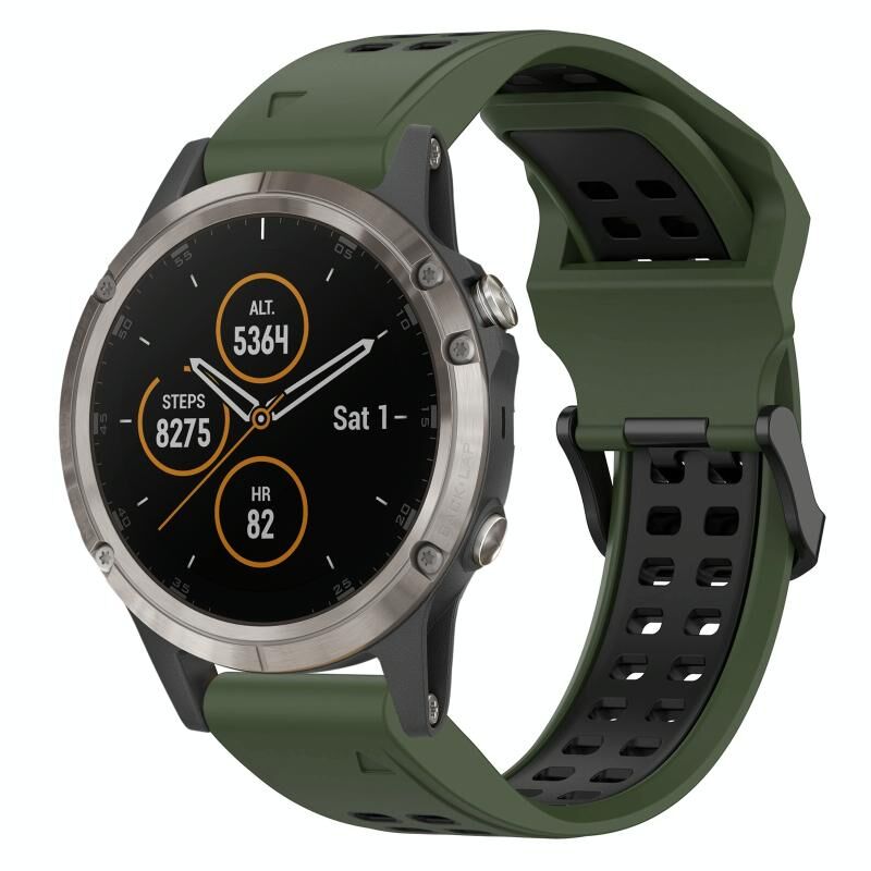 Ανταλλακτικό λουράκι σιλικόνης 22mm δύο χρωμάτων (στρατιωτικό πράσινο+μαύρο) με αντίστροφη αγκράφα για Garmin Fenix 5 Plus