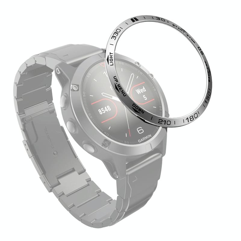 For Garmin Fenix 5 Smart Watch Steel Bezel Ring, B Version(Silver Ring Black Letter)