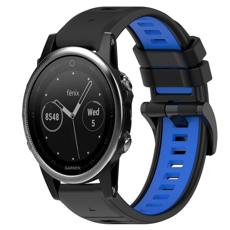 For Garmin Fenix 5 Sports Two-Color 22mm Silicone Watch Band(Black+Blue)