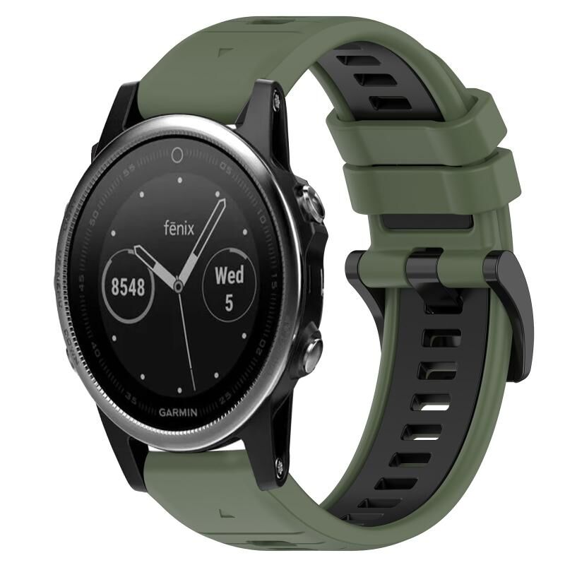For Garmin Fenix 5 Sports Two-Color 22mm Silicone Watch Band(Olive Green+Black)