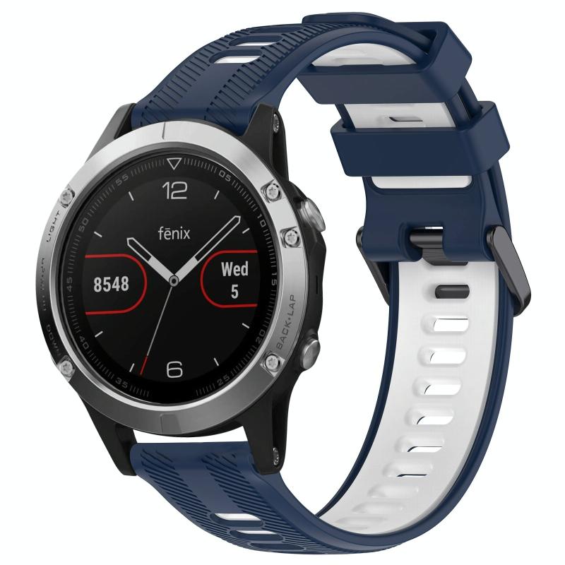 Λουράκι Garmin Fenix 5 Σπορ Δύο Χρωμάτων Σιλικόνης (Μπλε Μεσονυχτί+Λευκό)