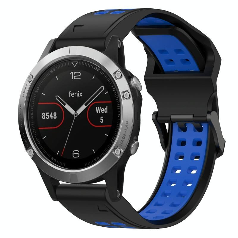 Ανταλλακτικό λουράκι σιλικόνης 22mm δύο χρωμάτων (μαύρο+μπλε) με αναστρέψιμη αγκράφα για Garmin Fenix 5