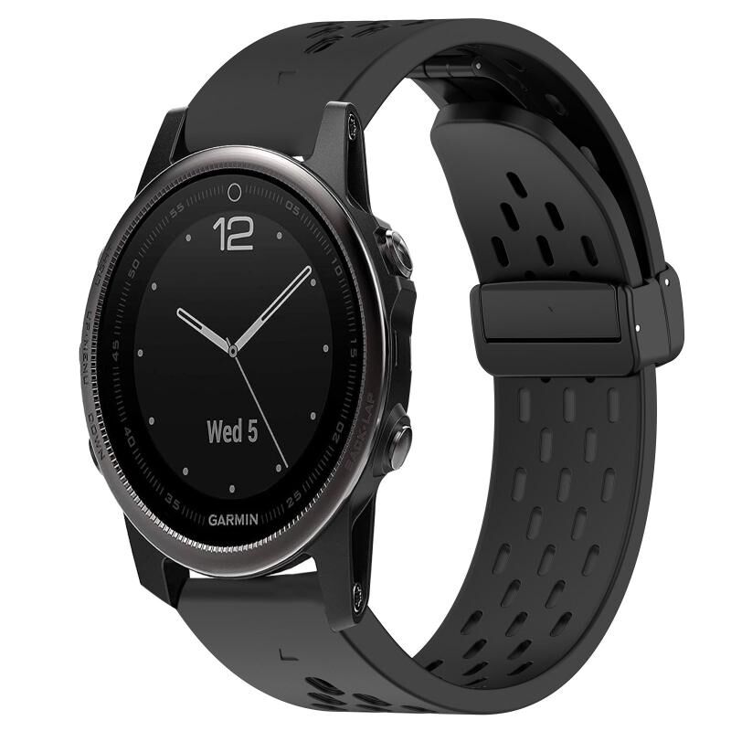 Λουράκι Garmin Fenix 5S 20mm Σιλικόνης με Αγκράφα Διπλώματος (Μαύρο)