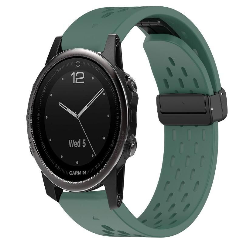 Λουράκι Garmin Fenix 5S 20mm Σιλικόνης με Αγκράφα Διπλώματος (Σκούρο Πράσινο)