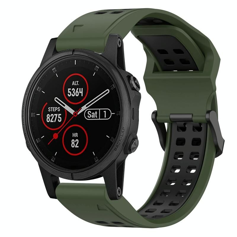 Ανταλλακτικό λουράκι σιλικόνης 20mm διπλού χρώματος (χακί+μαύρο) με αναστρέψιμη αγκράφα για Garmin Fenix 5S Plus