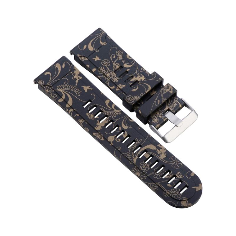 Για Garmin Fenix 5X (26mm) / Fenix3 / Fenix3 HR Λουράκι Σιλικόνης για Ρολόι (Μαύρα Λευκά Λουλούδια)