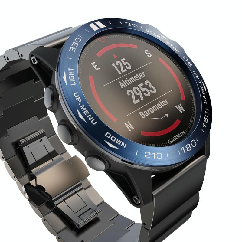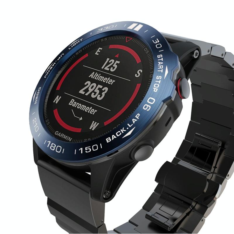 For Garmin Fenix 5X/5X Plus Smart Watch Steel Bezel Ring, B Version(Blue Ring White Letter)