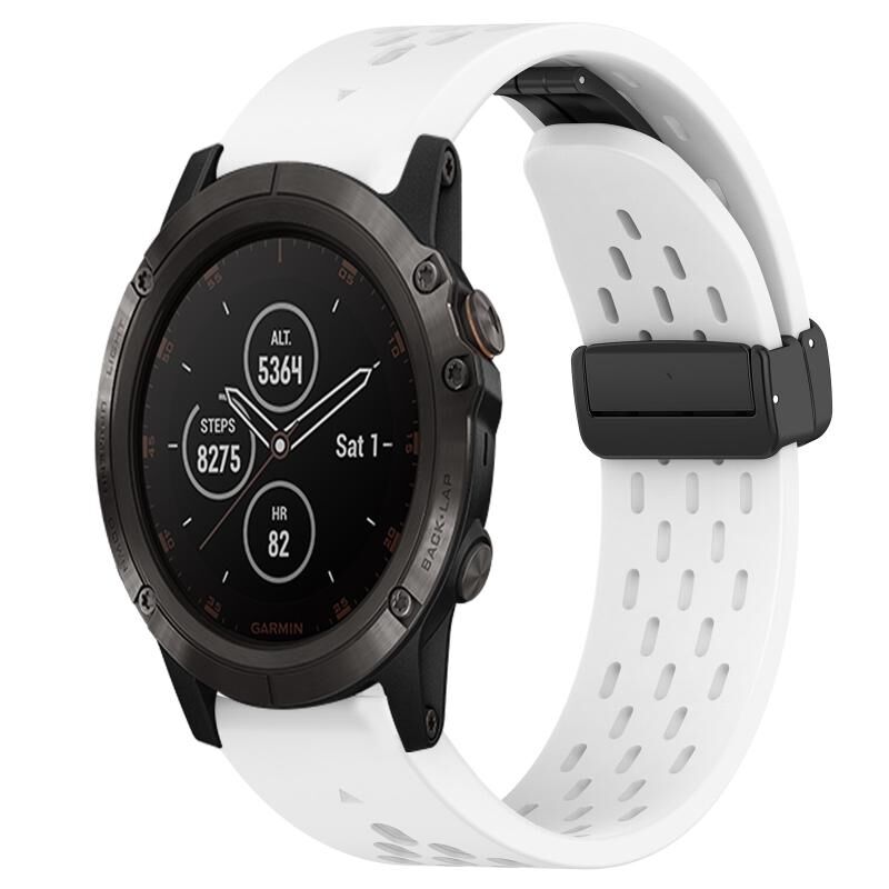 Για Garmin Fenix 5X Plus, Δακτύλιος Διπλώματος με Οπή, Λουράκι Ρολογιού Σιλικόνης 26mm (Λευκό)