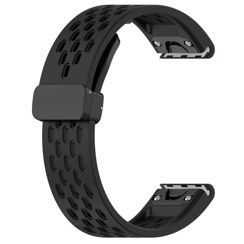 Για Garmin Fenix 5x Sapphire Γρήγορη απελευθέρωση οπές μαγνητική πόρπη σιλικόνης ρολόι μπάντα (μαύρο)