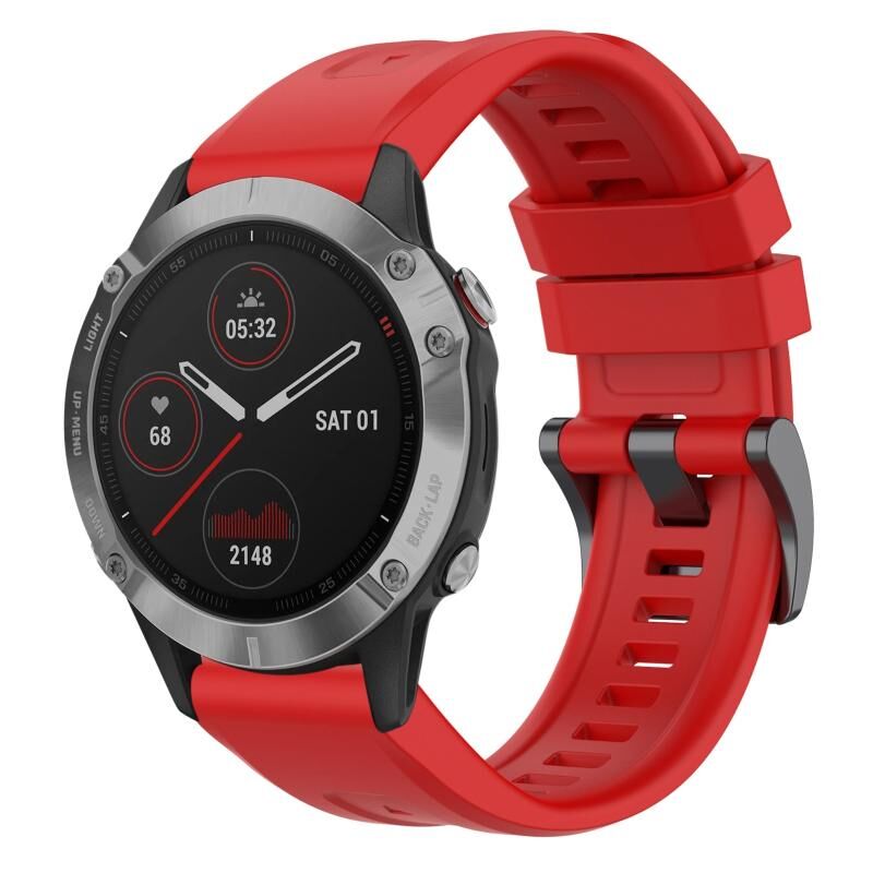 Για Garmin Fenix 6 GPS Αμιγές χρώμα μαύρο πόρπη σιλικόνης γρήγορη απελευθέρωση ρολόι μπάντα (κόκκινο)