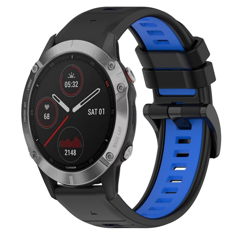 For Garmin Fenix 6 GPS Sports Two-Color 22mm Silicone Watch Band(Black+Blue)