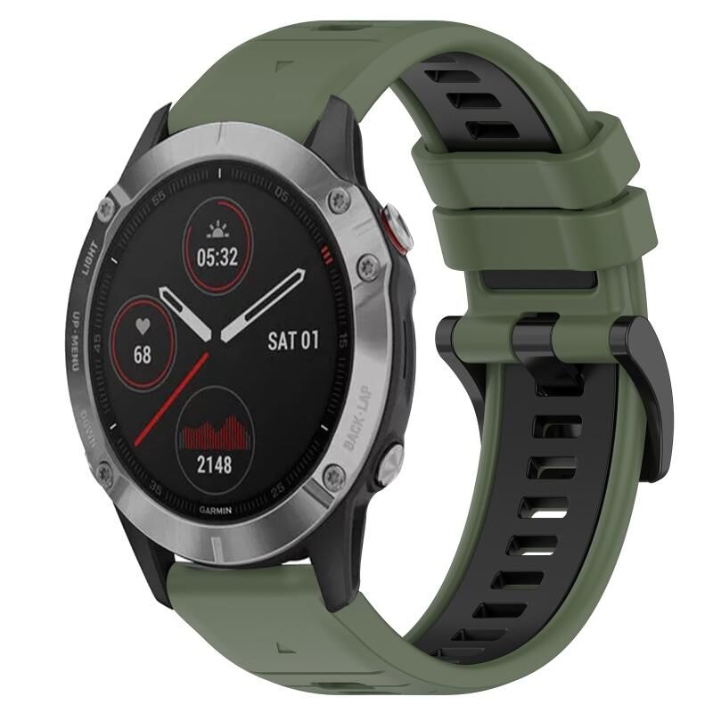 For Garmin Fenix 6 GPS Sports Two-Color 22mm Silicone Watch Band(Olive Green+Black)