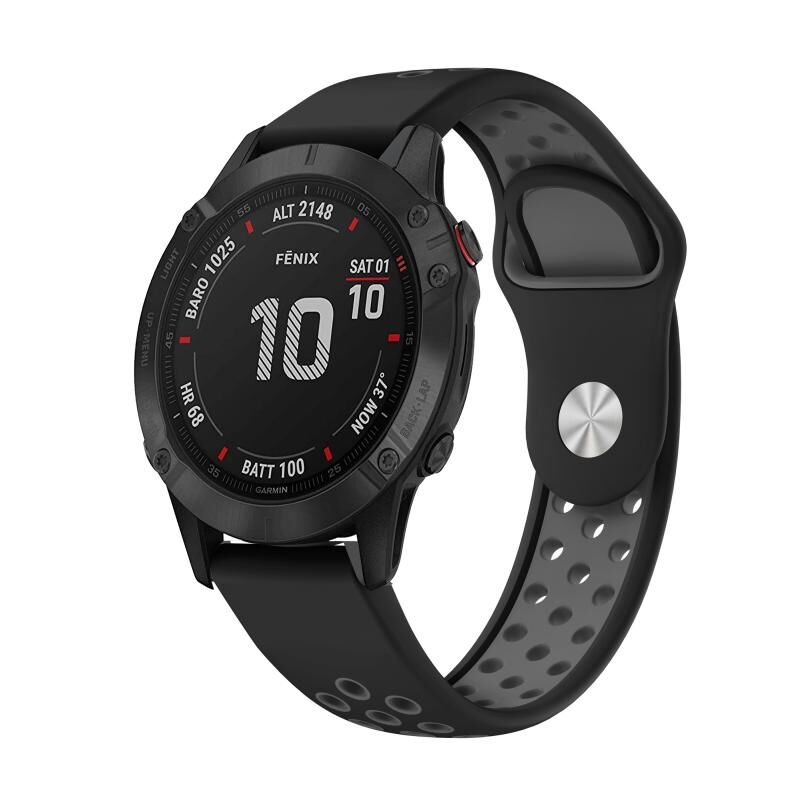Για Garmin Fenix 6 Pro GPS 22mm Αθλητικό αναπνεύσιμο λουράκι σιλικόνης (μαύρο+γκρι)
