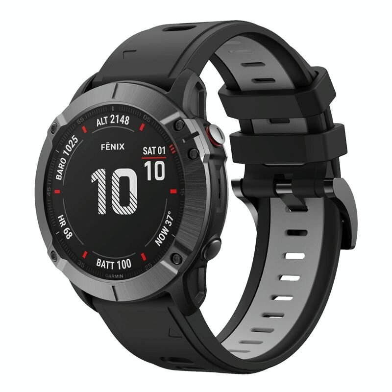 Για το Garmin Fenix 6 Pro GPS 22 χιλιοστά δύο χρωμάτων Αθλητικό λουράκι σιλικόνης (μαύρο + γκρι)