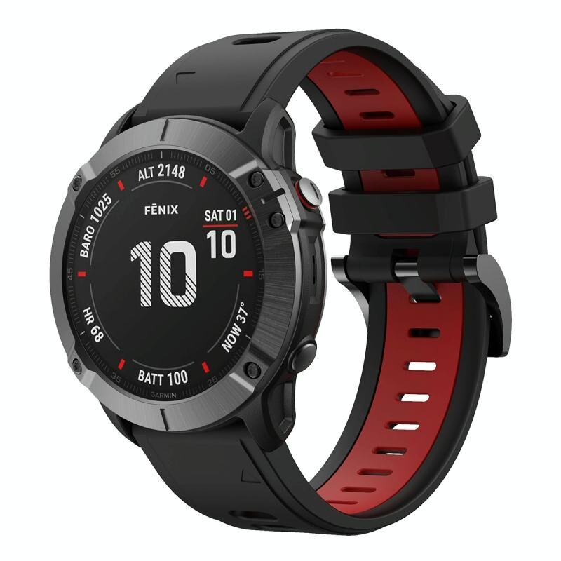 Για το Garmin Fenix 6 Pro GPS 22 χιλιοστά δύο χρωμάτων αθλητική ζώνη σιλικόνης ρολόι (μαύρο + κόκκινο)