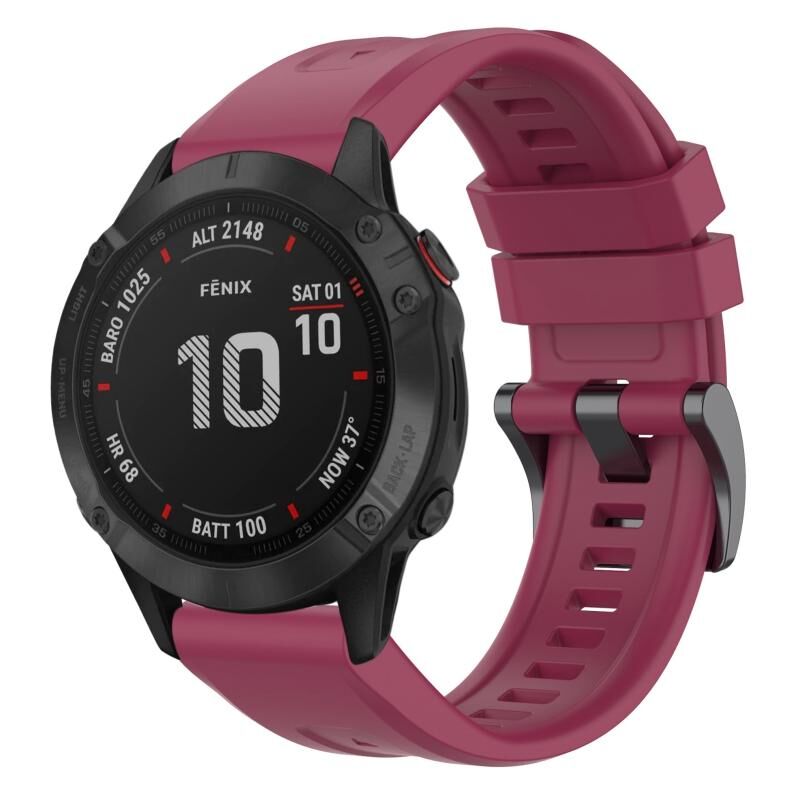 Για Garmin Fenix 6 Pro GPS Αμιγές χρώμα μαύρο πόρπη σιλικόνης γρήγορη απελευθέρωση ρολόι μπάντα (κόκκινο κρασί)
