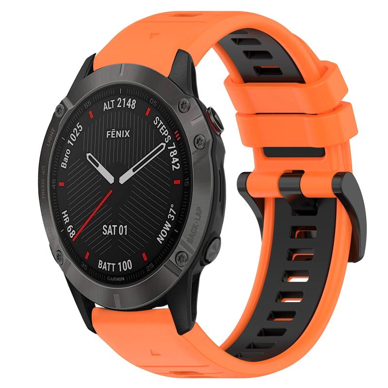 For Garmin Fenix 6 Pro GPS Sports Two-Color 22mm Silicone Watch Band(Orange+Black)