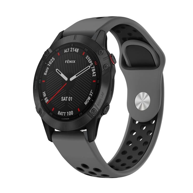 Για Garmin Fenix 6 Sapphire GPS 22mm Αθλητικό αναπνεύσιμο λουράκι σιλικόνης (γκρι+μαύρο)