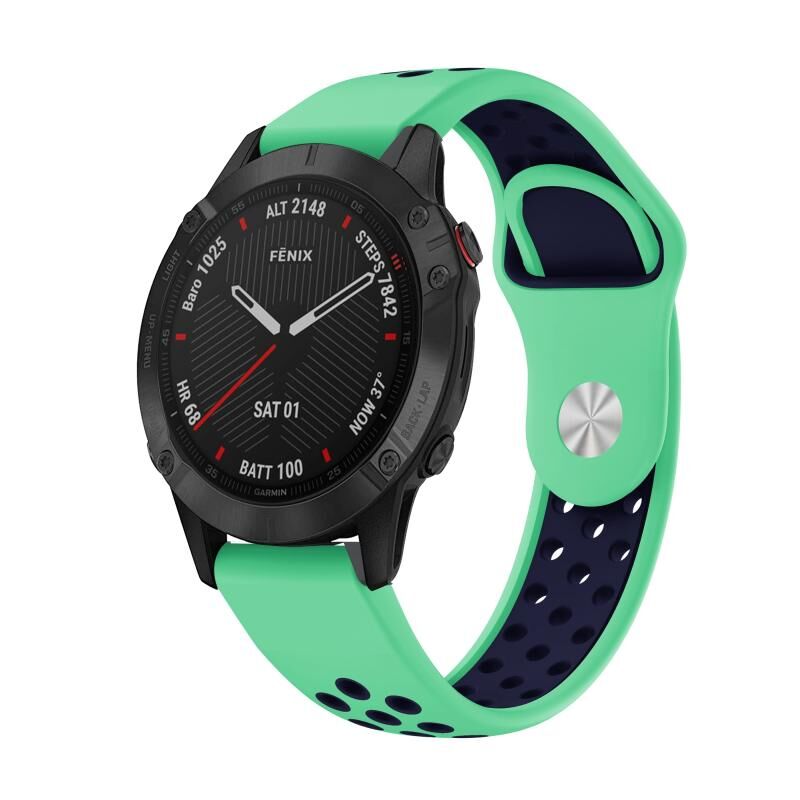 Για το Garmin Fenix 6 Sapphire GPS 22mm Αθλητικό αναπνεύσιμο λουράκι σιλικόνης (πράσινο + μπλε)