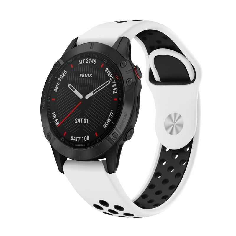 Για Garmin Fenix 6 Sapphire GPS 22mm Αθλητικό αναπνεύσιμο λουράκι σιλικόνης (Λευκό+Μαύρο)