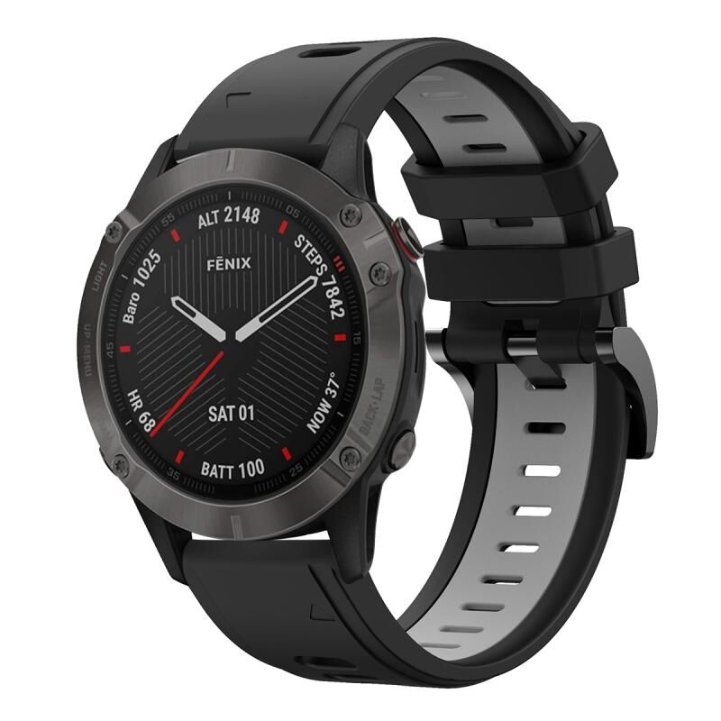 Για το Garmin Fenix 6 Sapphire GPS 22 χιλιοστά δύο χρωμάτων Αθλητικό λουράκι σιλικόνης (μαύρο+γκρι)