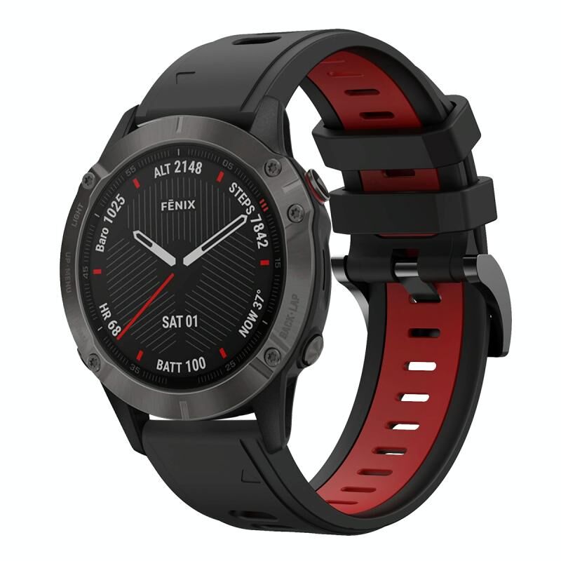 Για το Garmin Fenix 6 Sapphire GPS 22 χιλιοστά δύο χρωμάτων Αθλητικό λουράκι σιλικόνης (μαύρο+κόκκινο)