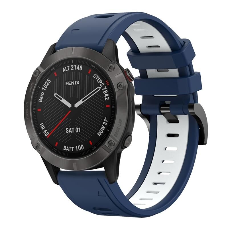Για το Garmin Fenix 6 Sapphire GPS 22 χιλιοστά δύο χρωμάτων αθλητική ζώνη σιλικόνης ρολόι (μπλε μεσάνυχτα + λευκό)