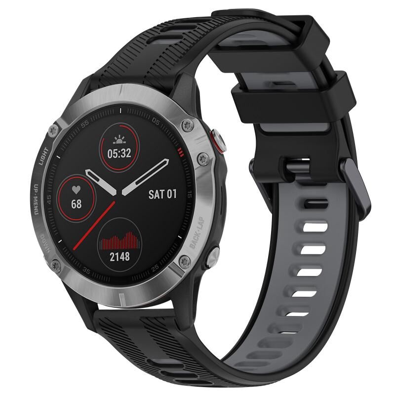 Για Garmin Fenix 6 Solar Sports Δύο-χρώμα σιλικόνης ρολόι μπάντα (μαύρο + γκρι)