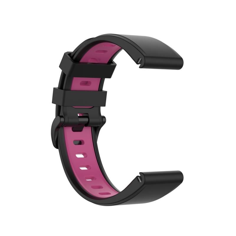 For Garmin Fenix 6 Two-color Silicone Watch Band(Black Rose Red)