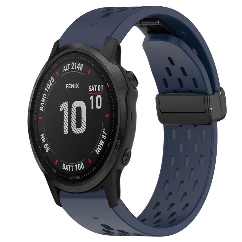 Λουράκι Garmin Fenix 6S 20mm Σιλικόνης με Αγκράφα Διπλώματος (Μπλε Μεσονυχτί)