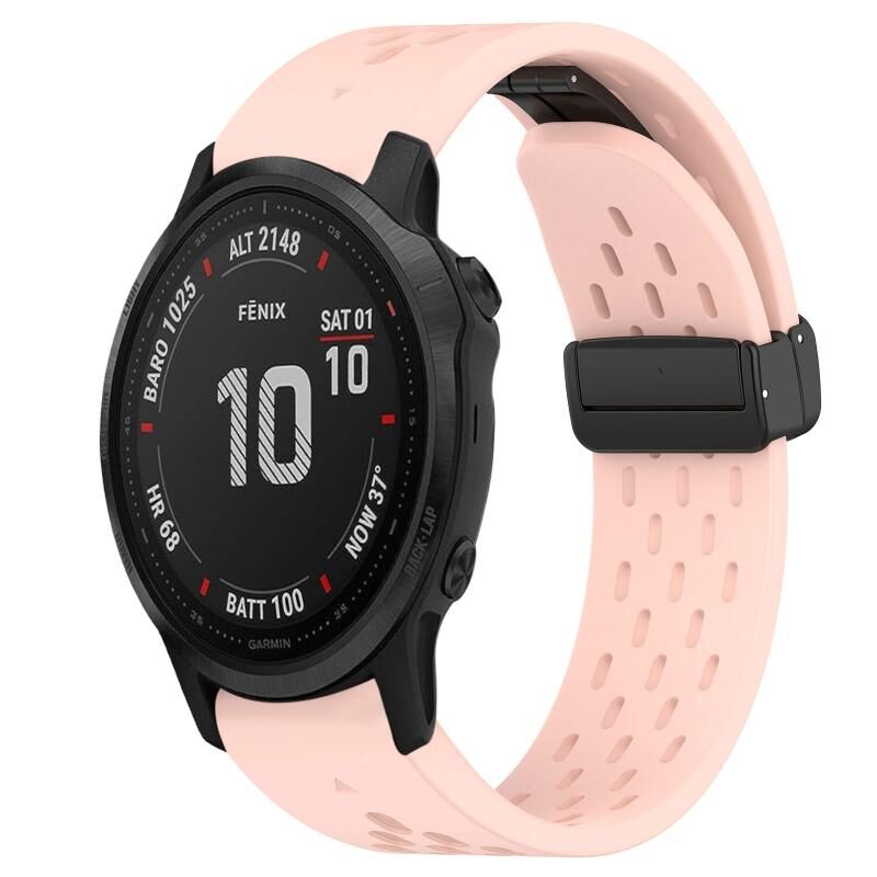Λουράκι Garmin Fenix 6S 20mm Σιλικόνης με Αγκράφα Διπλώματος (Ροζ)