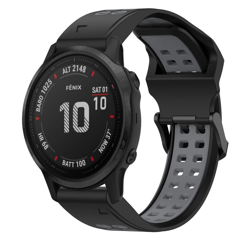 Ανταλλακτικό λουράκι σιλικόνης 20mm δύο χρωμάτων (μαύρο+γκρι) με αναστρέψιμη αγκράφα για Garmin Fenix 6S Pro