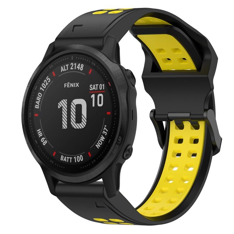 Ανταλλακτικό λουράκι σιλικόνης 20mm δύο χρωμάτων (μαύρο+κίτρινο) με αναστρέψιμη αγκράφα για Garmin Fenix 6S Pro