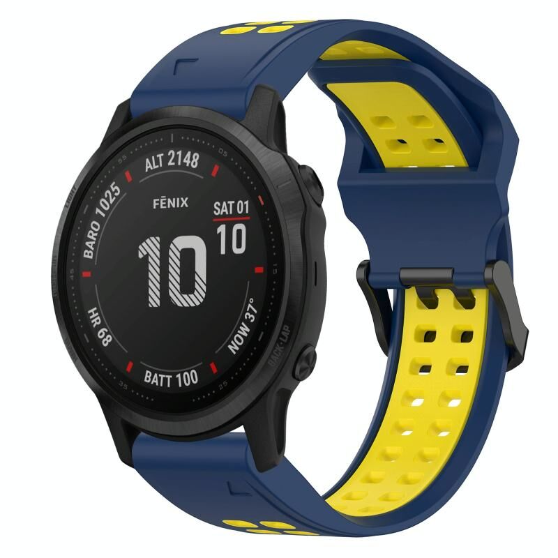 Ανταλλακτικό λουράκι σιλικόνης 20mm δύο χρωμάτων (μπλε+κίτρινο) με αναστρέψιμη αγκράφα για Garmin Fenix 6S Pro